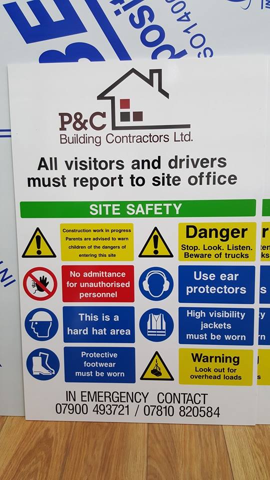 We have an extensive catalogue of health and safety signs. The generic heath and safety sign can be adapted to incorporate your company logo. We manufacture all compound and construction signage suitable for fixing onto hoardings, cabins, storage rooms and welfare facilities. Safety signs are available as rigid or self adhesive, bespoke configurations for site boards and location specific requirements.