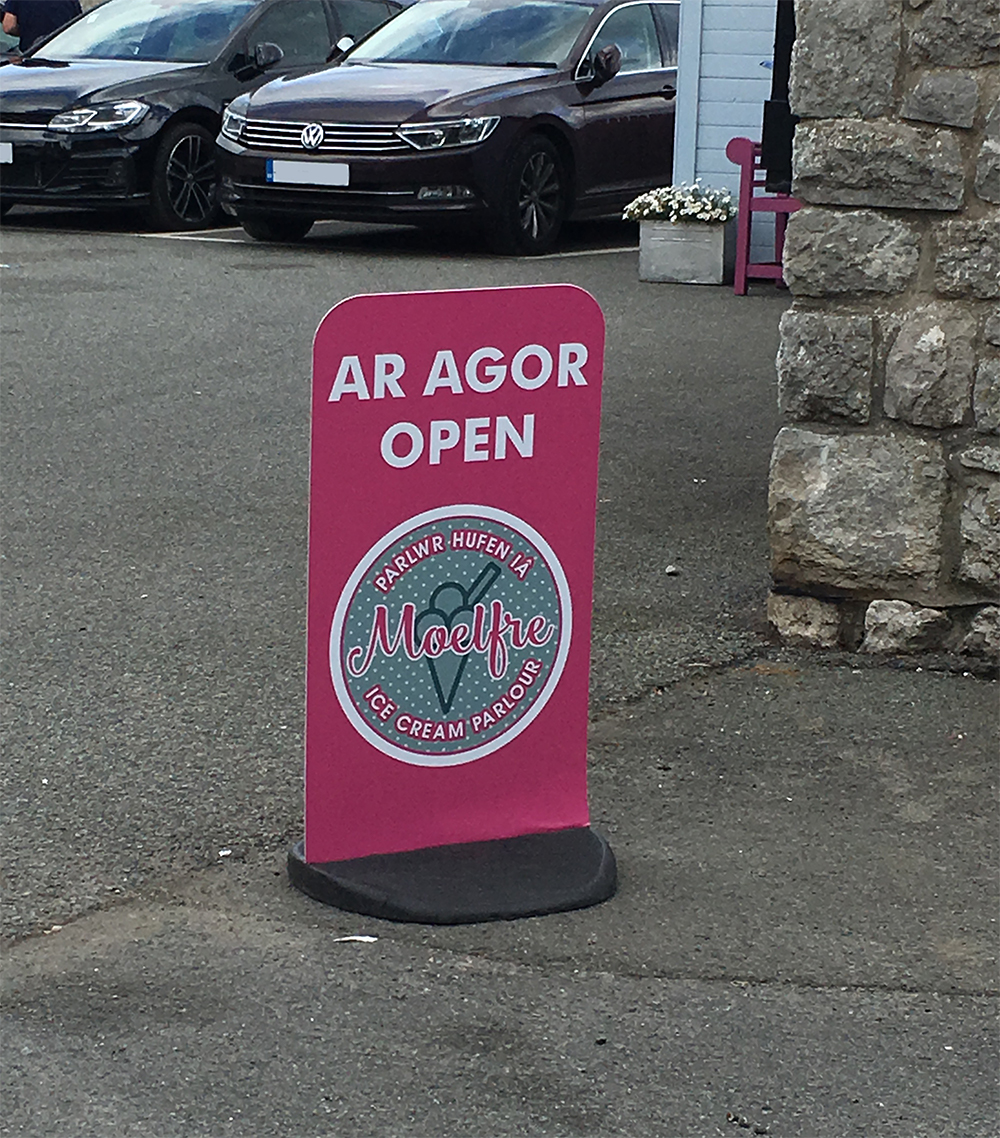 They are very portable and are made from a variety of materials including aluminium, steel, plastic with recycled rubber bases, water filled bases, concrete bases, with options of interchangeable posters or permanent graphics.